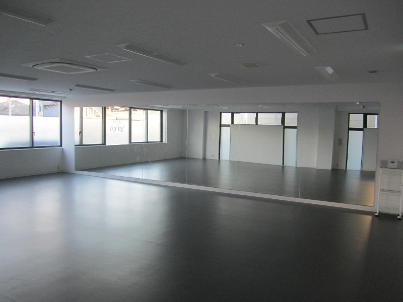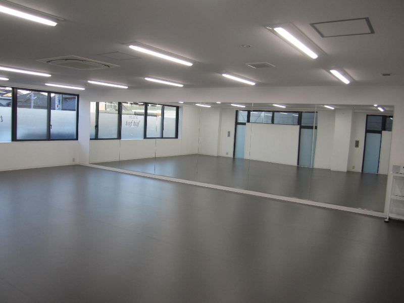 当スタジオの床は、松山バレエ団と東リが共同開発した、クッション性と適度な硬さが特長である舞台やバレエ、ダンス、エアロビクス専門のプロ用床シートのTMフロアを使用しております。